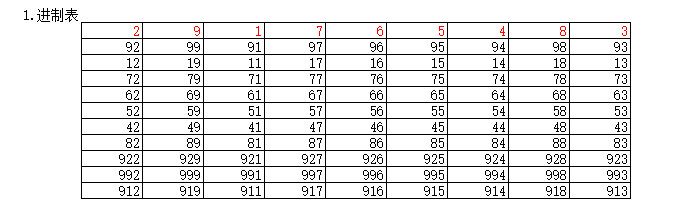原十进制排列 0 1 2 3 4 5 6 7 8 9
