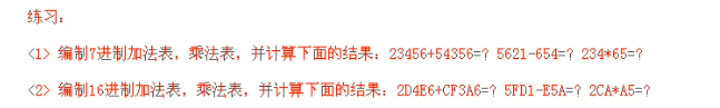 计算不同进制的本质也是查表,先列出进制表 然后写出进制表对应的进制加法表和乘法表,计算通过查表可得