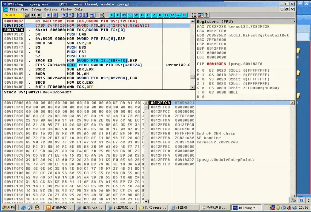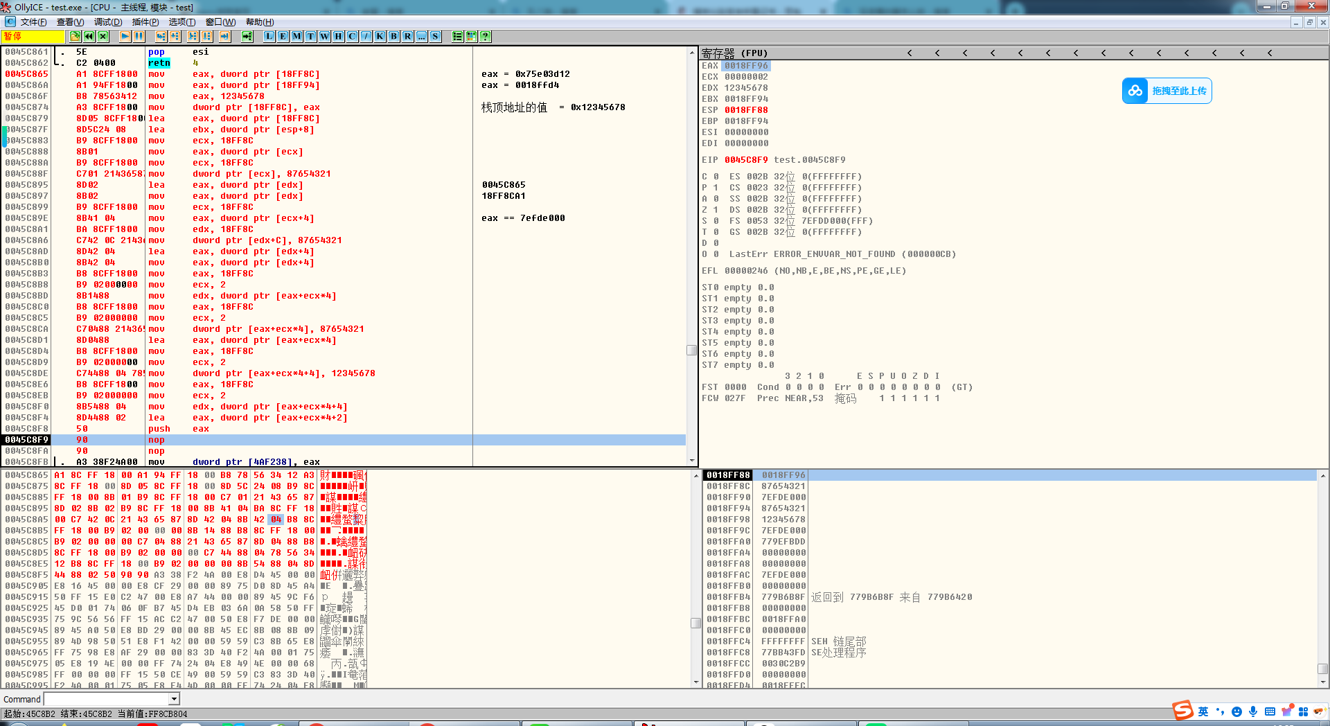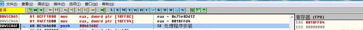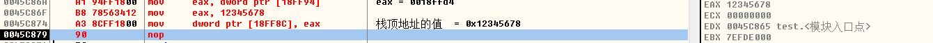 MOV EAX,DWORD PTR DS:[0x13FFC4]//从后边地址取值,取32位大小的数据