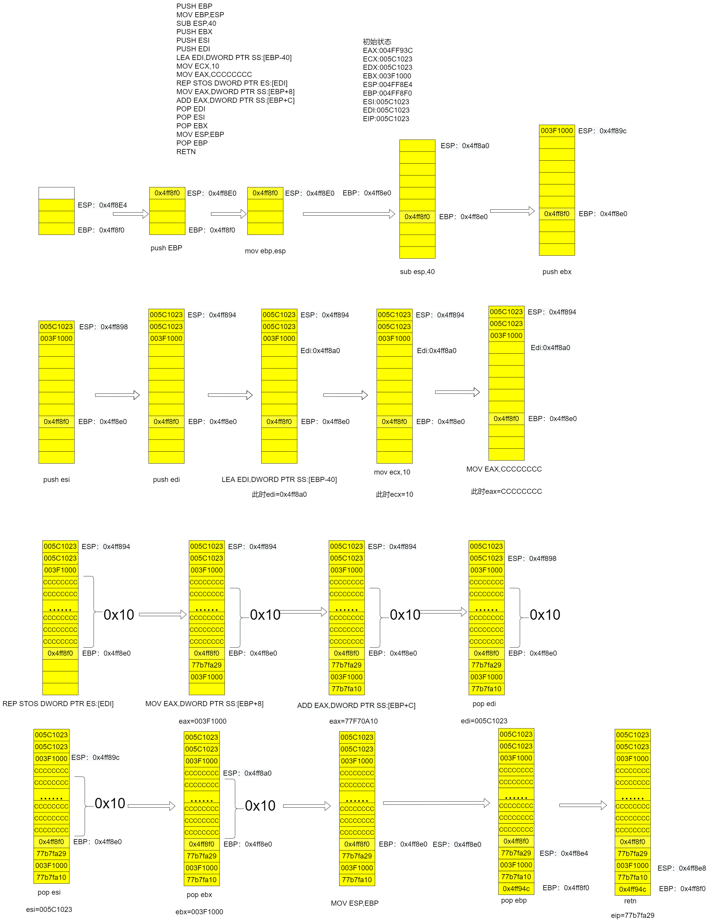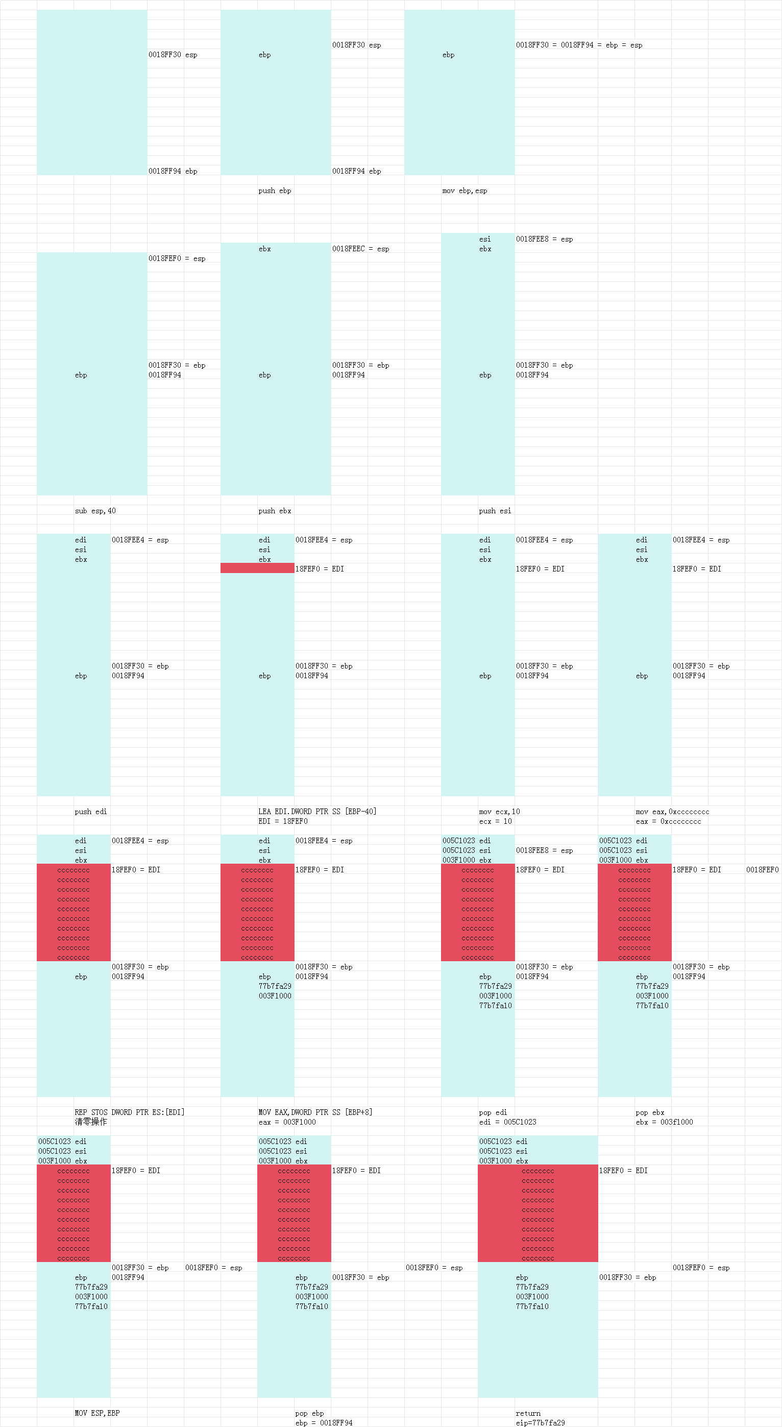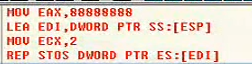 核心逻辑:ECX 控制次数,DI 指向目标内存,累加器提供填充值,重复执行存储操作;