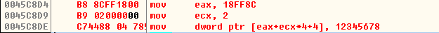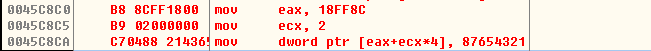MOV DWORD PTR DS:[EAX+ECX*4+4],87654321